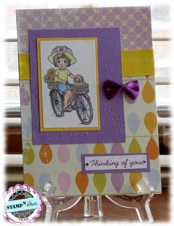 I am late posting this. This past Tuesday was Stamp-n-Doodle's challenge for Ribbons and Bows. You have to use both.